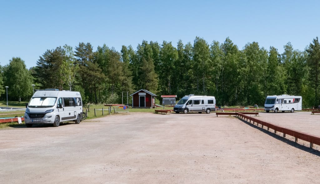 Kommer du riksväg 70 söder ifrån, har passerat Borlänge och svängt vänster mot Sälen vid rondellen i Djurås skall du hålla koll åt vänster. Sväng ner på en asfalterad kostig och avsluta med en 180-graders böj som kräver en backning med en normalstor husbil innan du kommer rätt. Efter en snutt grusväg breder Västerdalälven ut sig flankerad av en samling röda stugor med vita knutar. Du är framme vid Ratt & Roder, en anläggning med sju stugor för uthyrning, plats för lek och evenemang samt en stor hyfsad plan gräsyta. Här är du välkommen att parkera din husbil eller husvagn. Inga markerade ytor så sunt förnuft får råda. Man erbjuder el men det är lite si och så med det. Elen består av en byggcentral i början av ställplatsen så se till att du har rejält med kabel i bilen. De mesta faciliteter är på plats men jag saknar tömning av grå- och svartvatten. Förmodligen svårt att få till då det troligtvis saknas kommunalt avlopp. Men det kan man faktiskt leva med. Miljön väger gott och väl upp de få tillkortakommandena som tömning innebär. Lugnt, tyst och en spottlängd från älven. Du är välkommen att låna roddbåt, flytvästar finns det med. Är du sugen på en bastu med påföljande dopp i älven går det också bra. Generöst nog tar man inget extra för de här aktiviteterna - Bra där! Det är även i bastun som du hittar dusch och toa.  Det funkar att ha med voffen, du har ett ganska stort område att rasta på och ett litet fält intill där du kan släppa pälsklingen lös en stund. En mysig ställplats som får tre starka husbilar i betyg. Hade det funnits möjlighet att göra sig av med flytande sopor hade det lätt blivit en husbil till. Text & Bild: Gomer Swahn Publicerad 2025-07-27